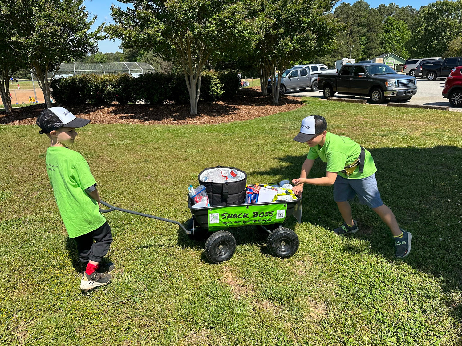 Tate built the very first AllBoss cart and became the original “SnackBoss,” selling snacks at his brother’s baseball games to earn money for gaming equipment. What started as a simple business idea quickly gained attention. Tate’s snack stand drew a crowd—and more importantly, it drew friends. A team formed, and a loyal customer base followed.